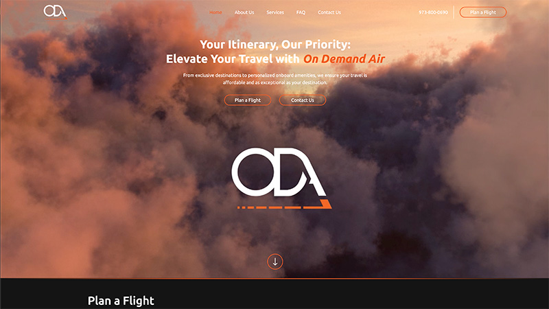 Full WordPress build for a private aviation company — features a multi-step flight planning form with dynamic routing, passenger details, and trip configuration.